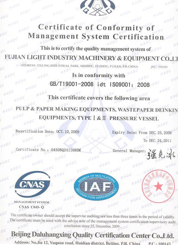 Fujian Light Industry Machinery & Equipment Co., Ltd. (FJLIME) is a major pulp making machine manufacturer in China. Our products include paper pulping machine, paper cleaner, disperser system, deinking machine, and so on. As an ISO9001 and ISO14001 certified company, we are able to provide high quality, eco friendly paper pulping equipment to customers all over the world.